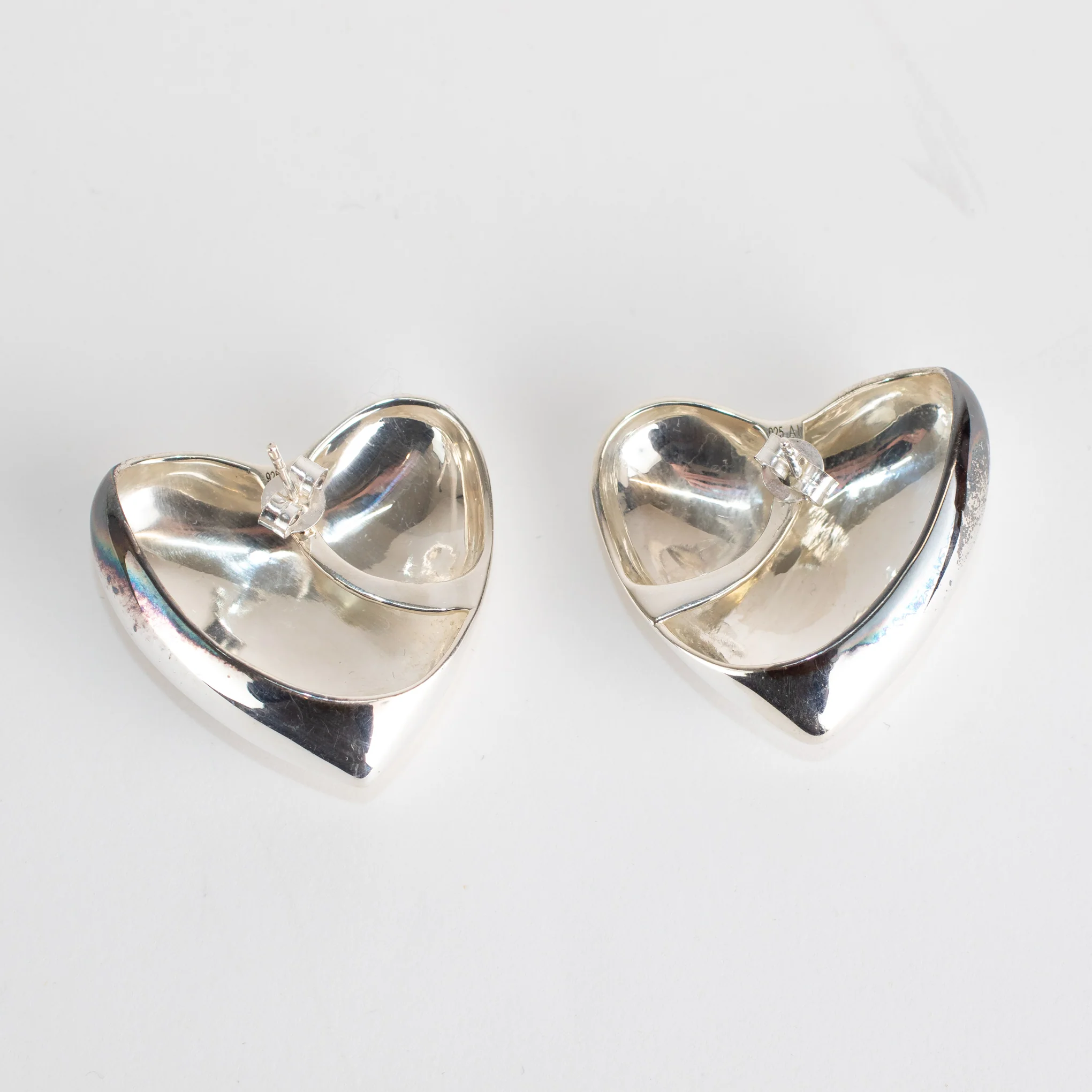 Annika Inez Voluptuous heart stud earrings for pierced ears, crafted from 925 sterling silver, hallmarked, with butterfly backs. New without tags, accompanied by the original pouch RRP £260.