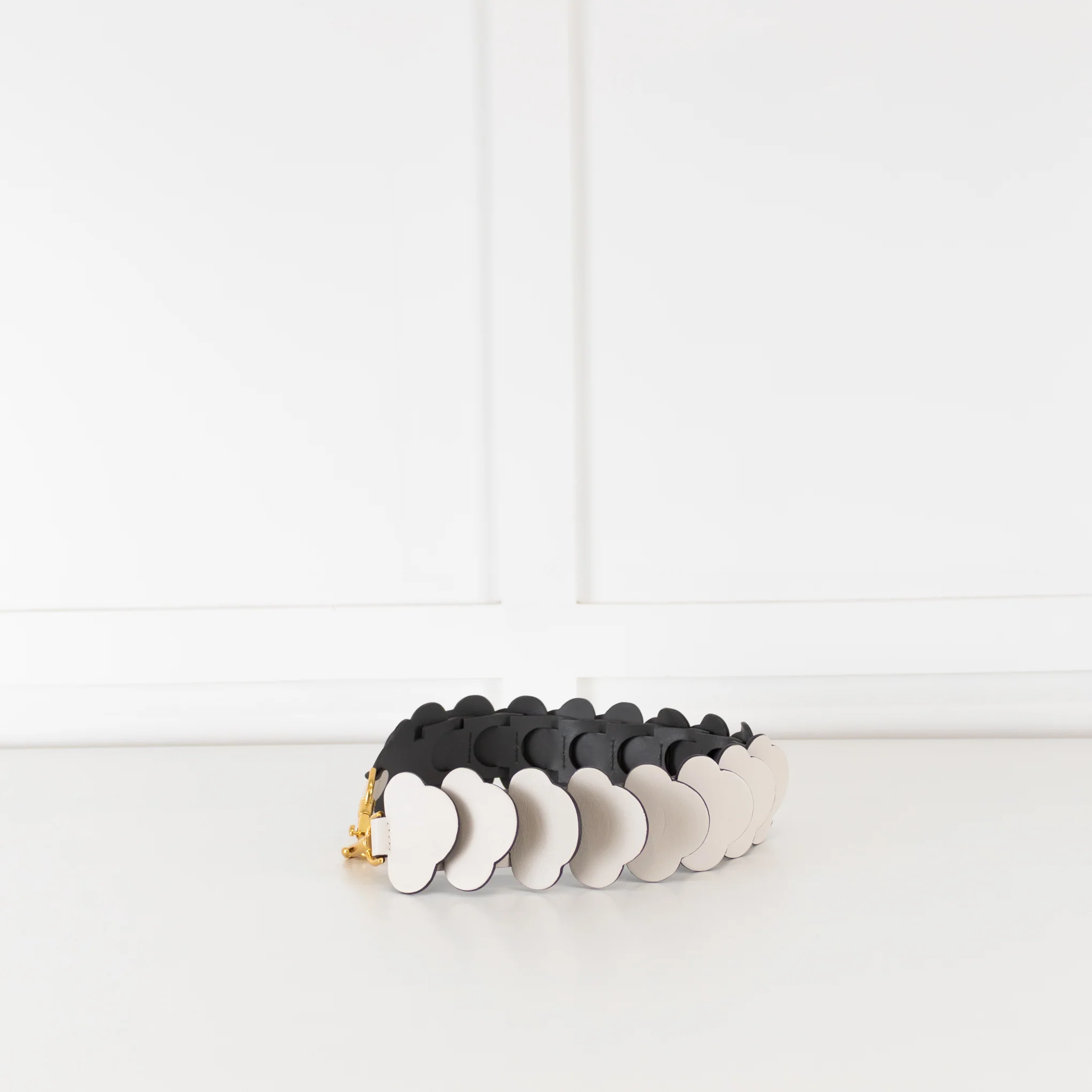 Anya Hindmarch 'Build a Bag' white leather cloud shoulder strap with matte gold-tone hardware, a grey contrast reverse to the cloud links, and two large clips to fasten onto your bag. Accompanied by the original dust bag and box.