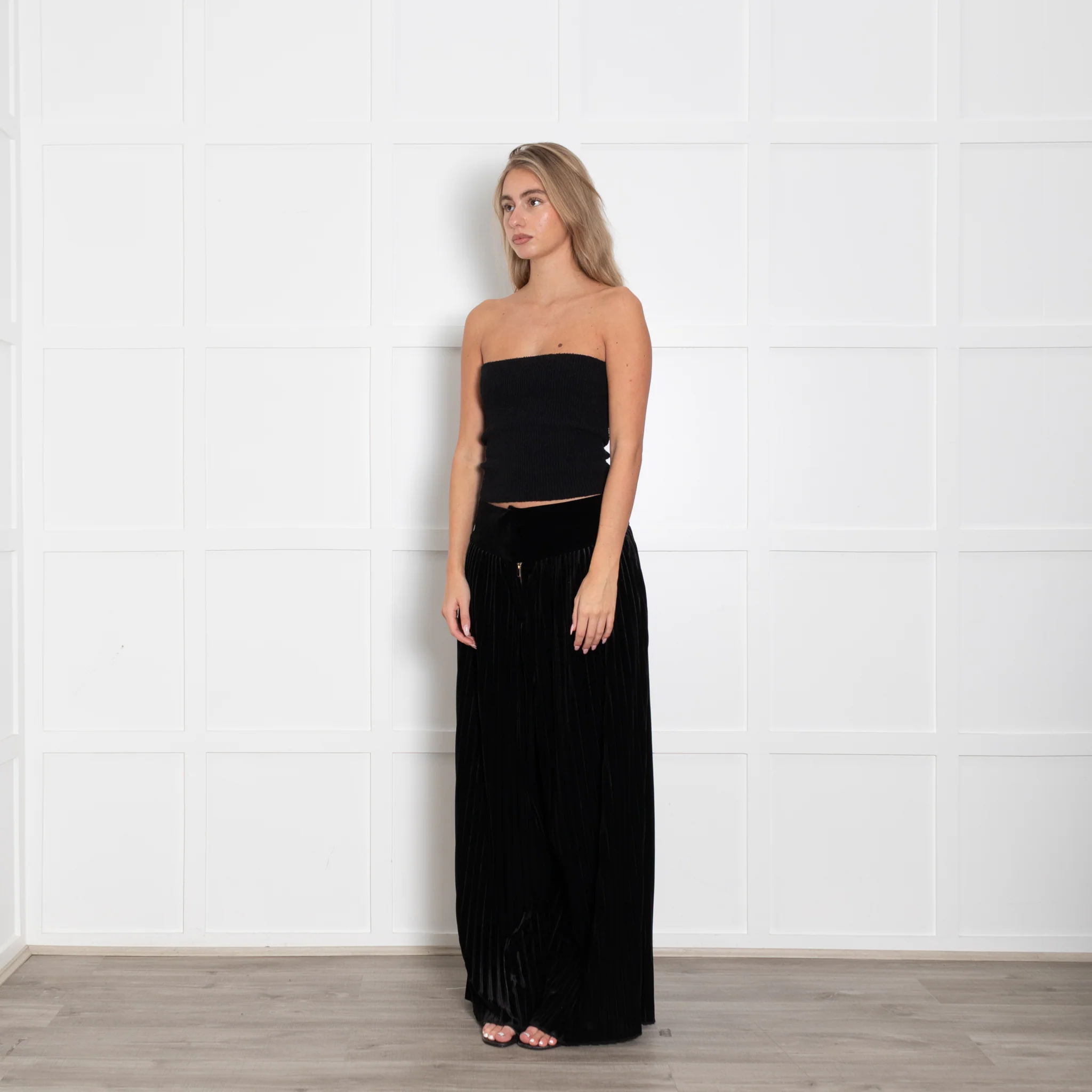 Balmain Black Velvet Wide Leg Trousers