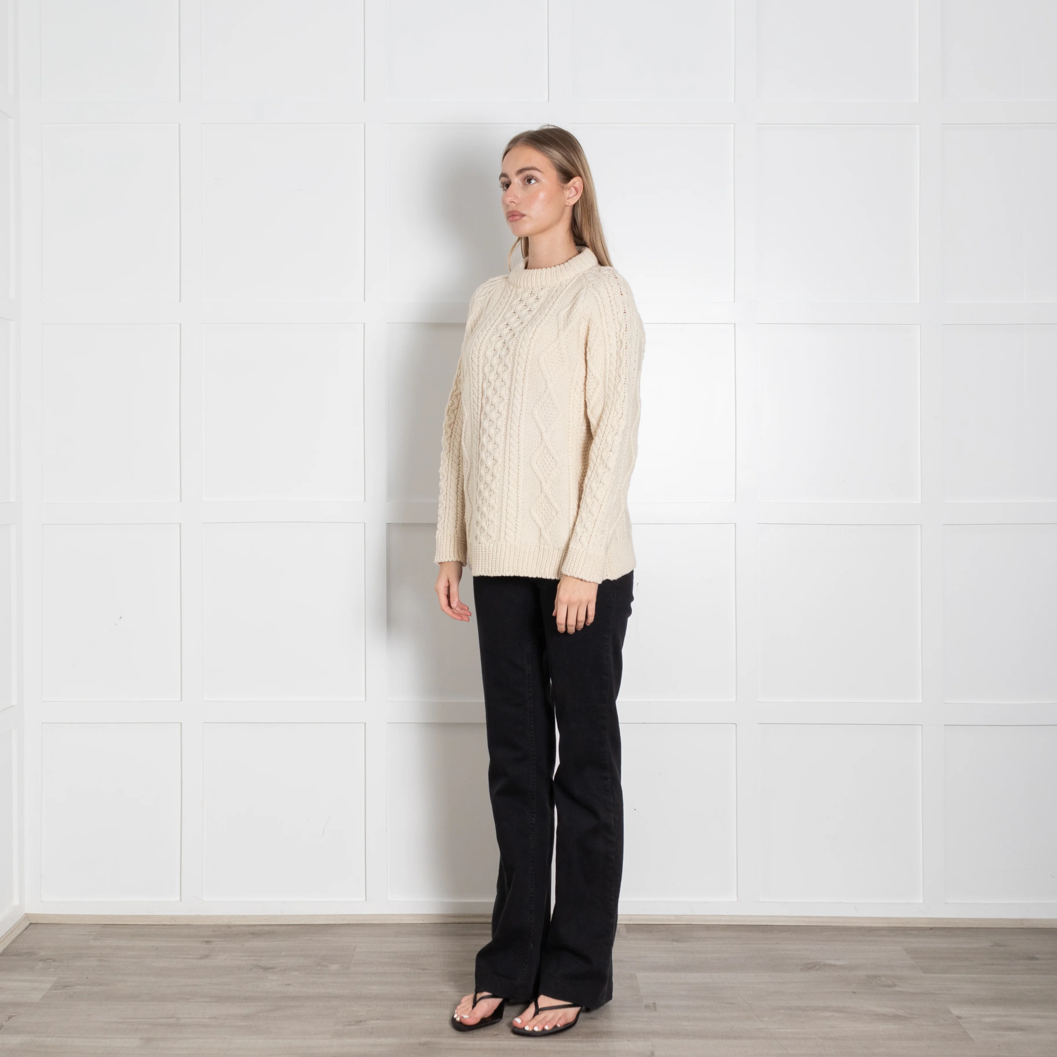 -70%&Daughter Cream Aran Chunky Knit Crewneck—