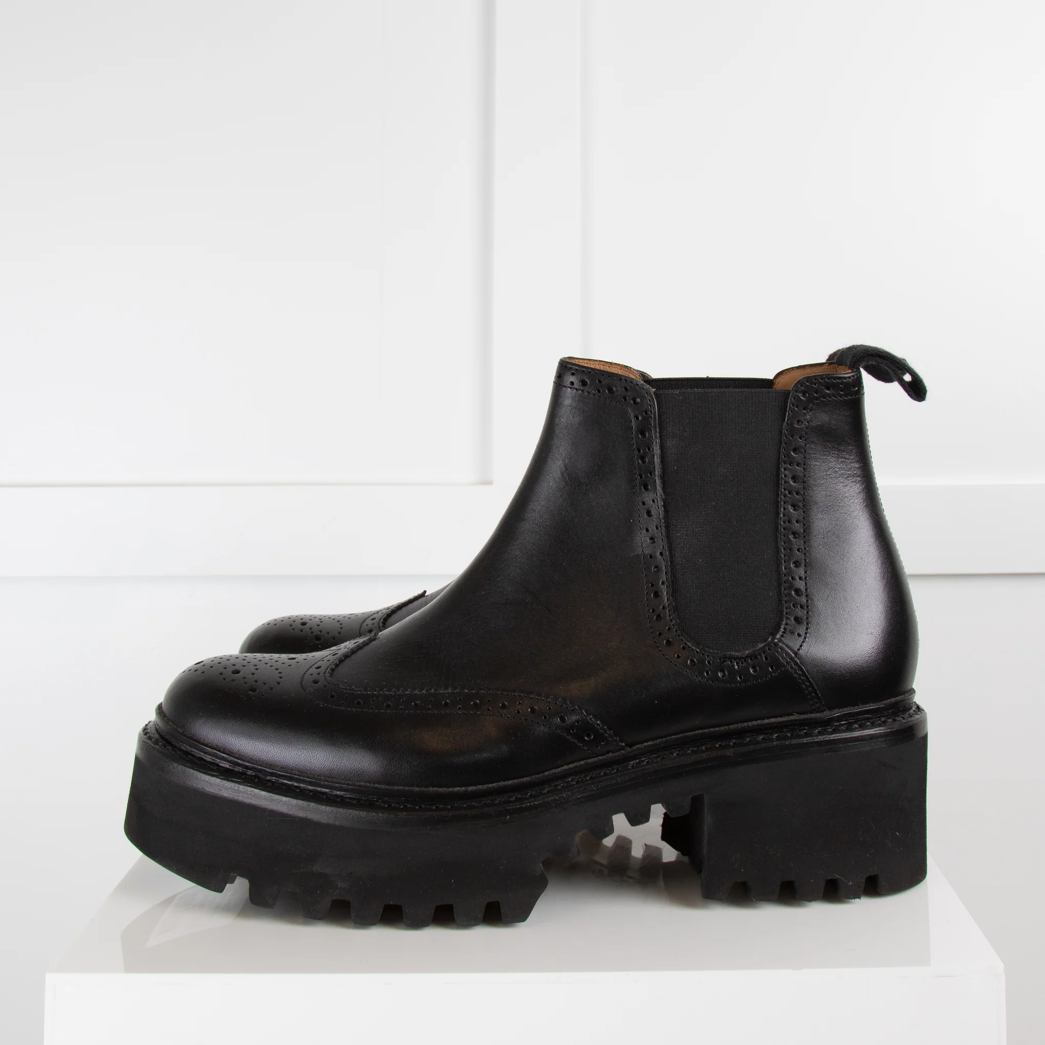 Grenson Black Alissa Perforated Leather Platform Chelsea Boots