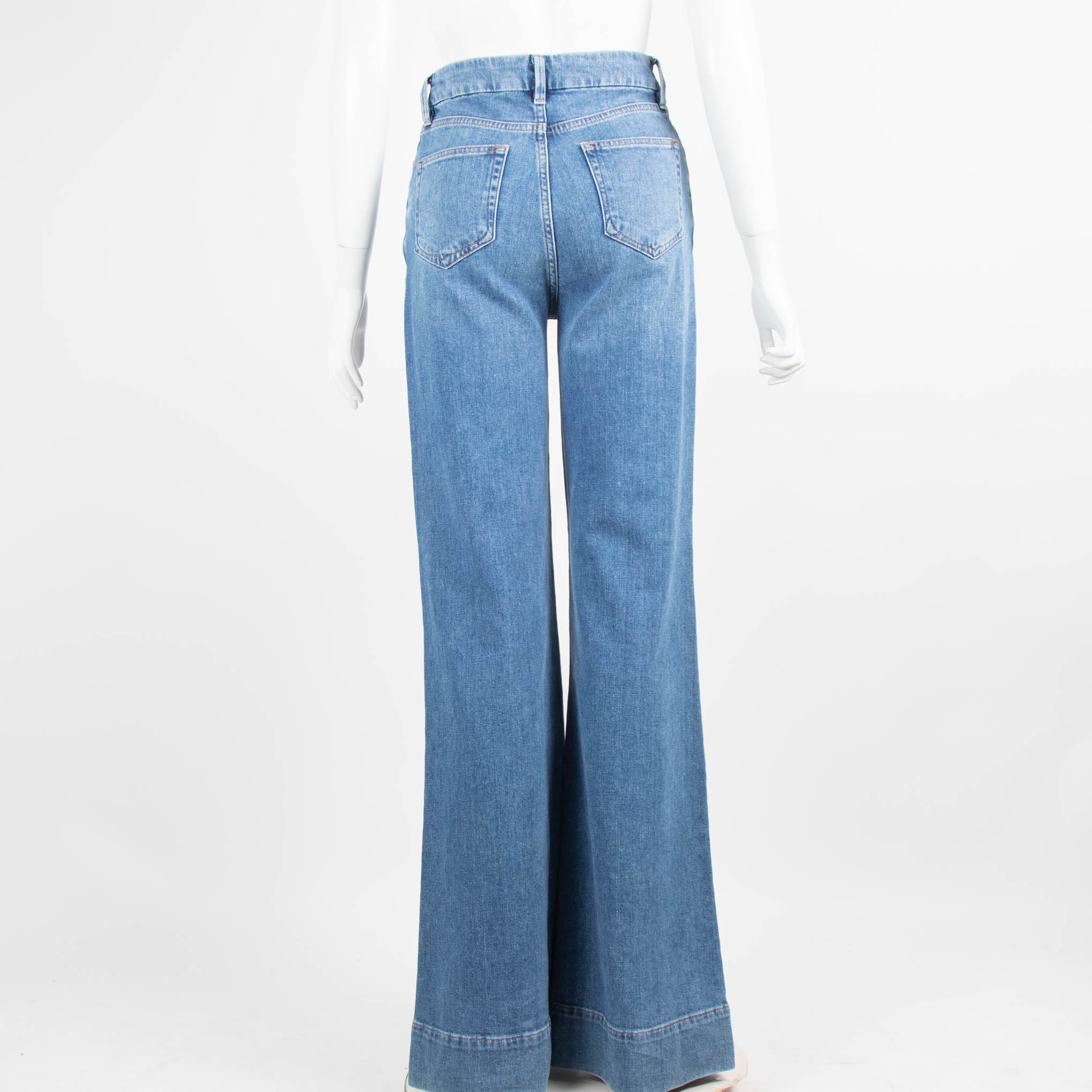 Ida light blue high-waisted flared jeans with woven detailed pockets. With two back pockets and IDA engraved single button and zip front fastening.