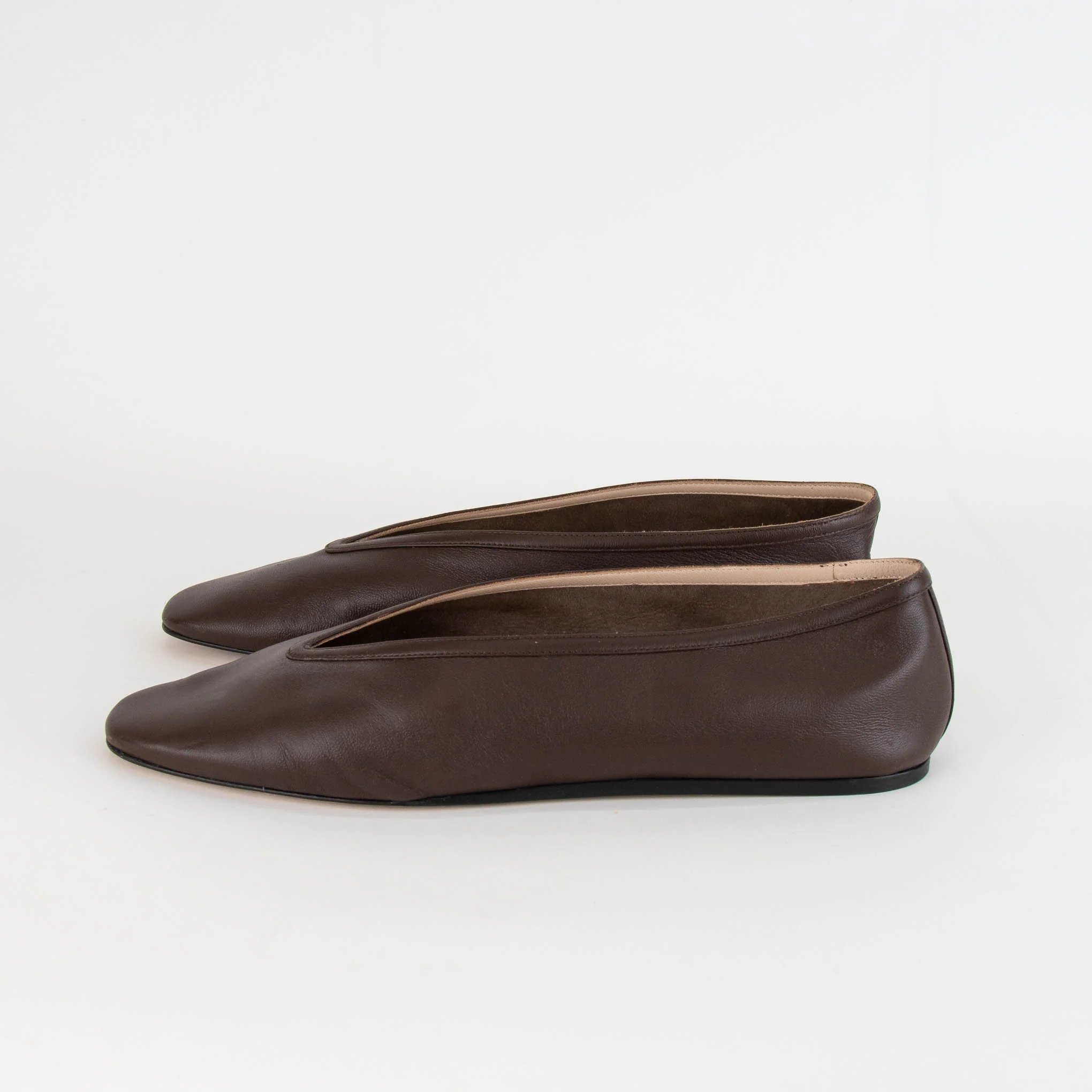 Le Monde Beryl Luna brown leather pumps. Featuring pointed toes, tonal stitching, and branded leather footbeds. Accompanied by the original dust bags and box.