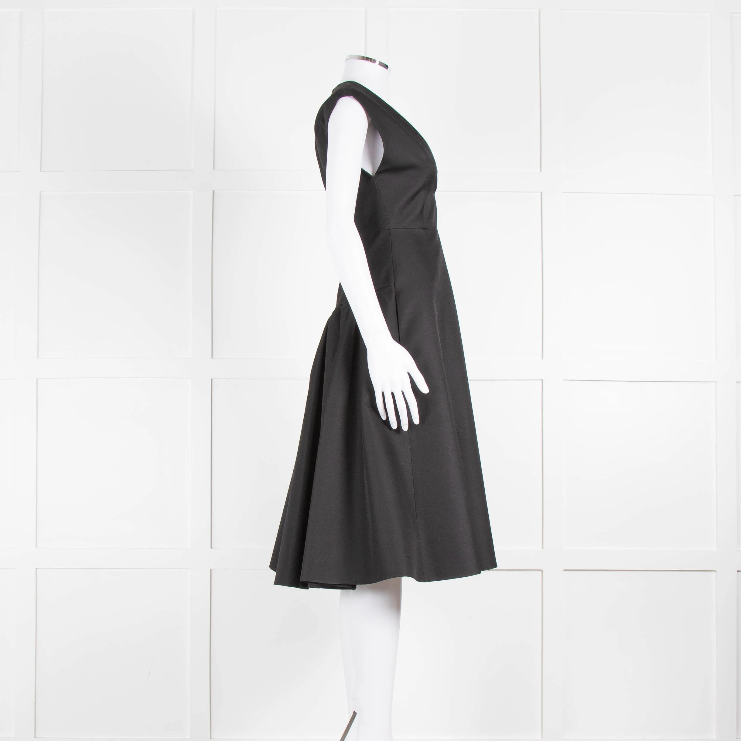 Michael Kors Collection Black Wool Silk Mix Deep V Fit & Flare Dress—