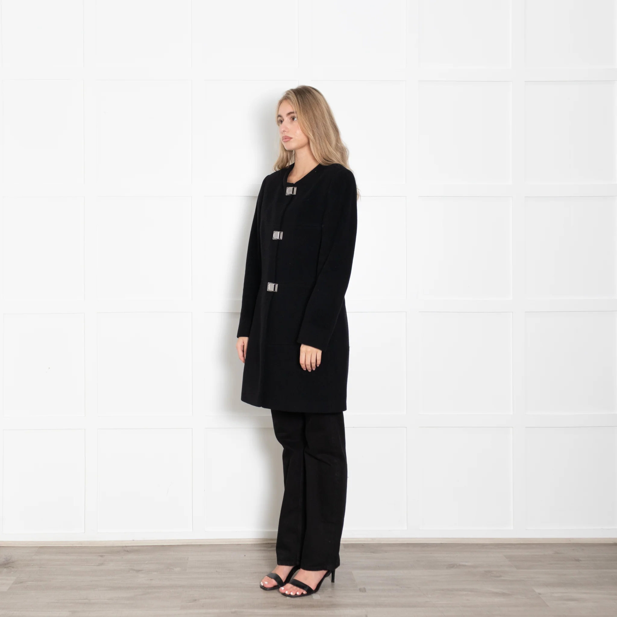 Riani Black Collarless Buckle Coat
