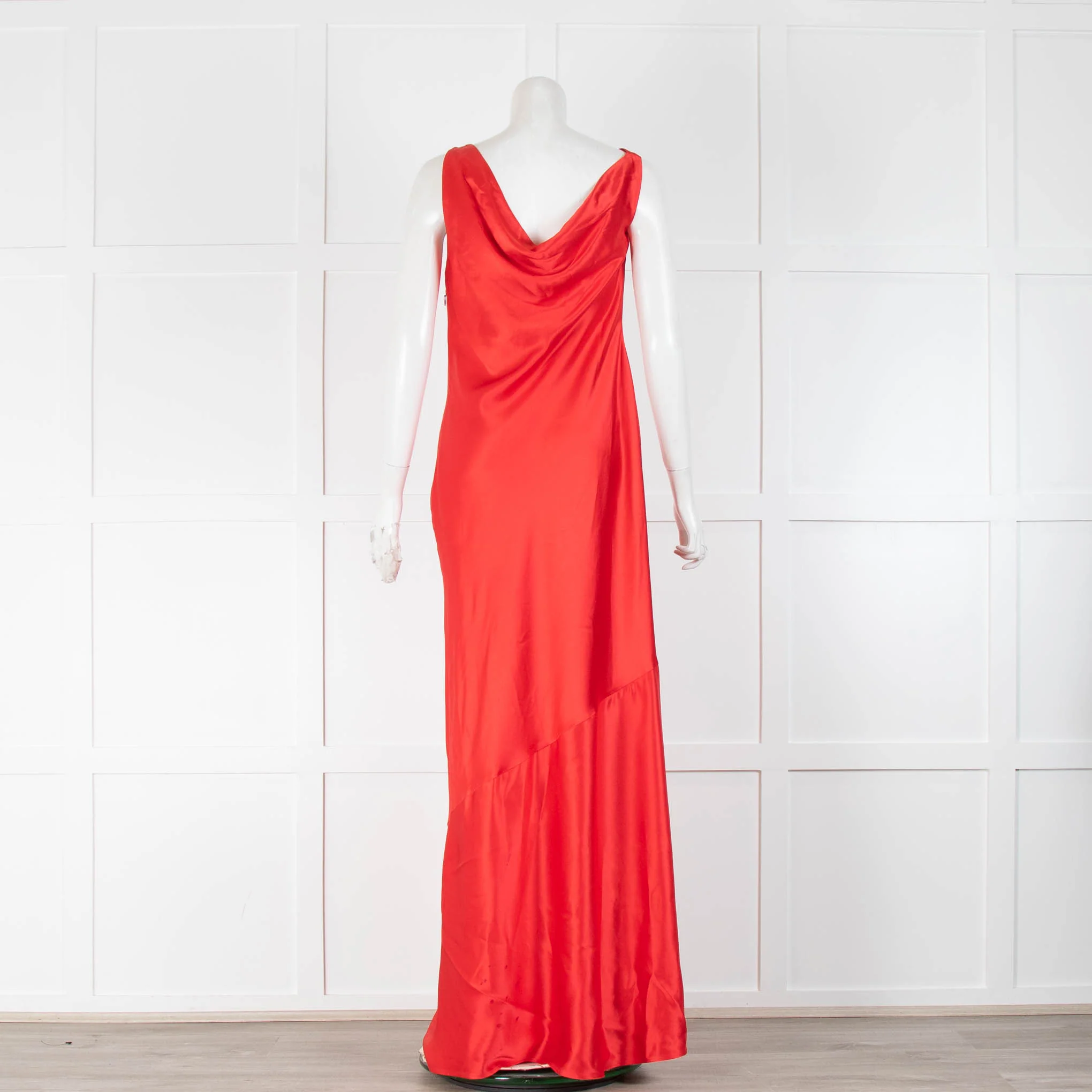 Staud 'Ashanti' red rose satin long sleeveless bias cut dress with an asymmetric draped neckline, full lining, and invisible side zip. New with tags RRP £475.