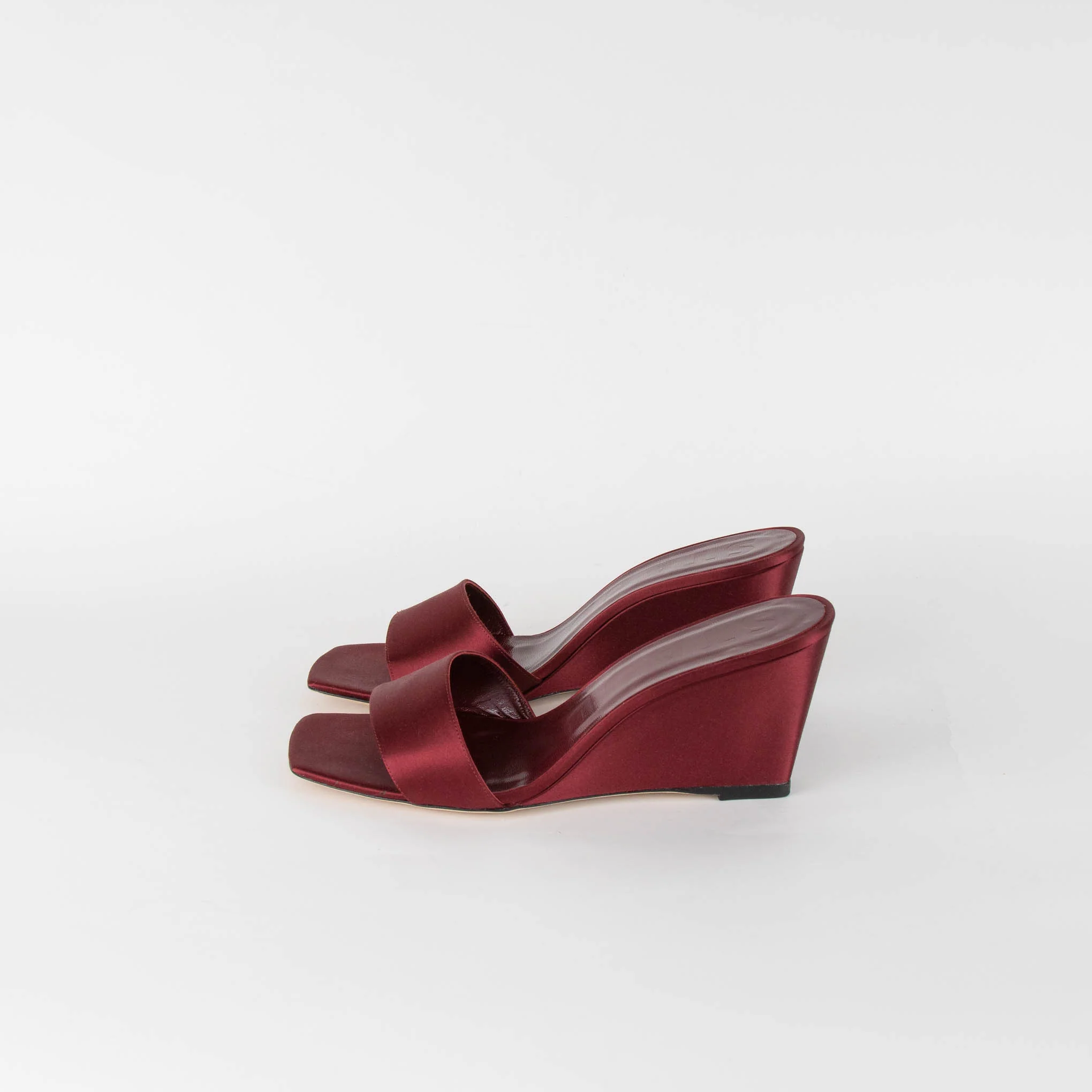 Staud Burgundy Satin Wedge Mules